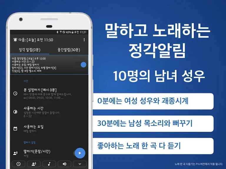 말하는 정각알림 - 독립 중간 알람 음성 음악 탁상시계 어플을 만들어 주신 개발자님 감사합니다~