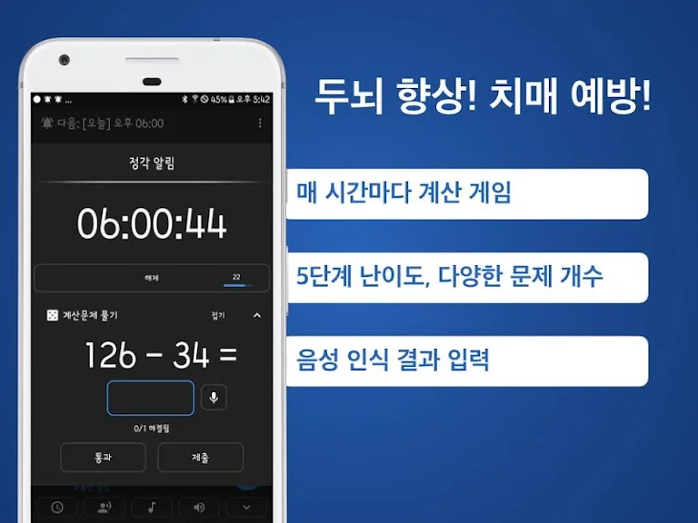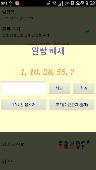 ☆ 퍼즐 옵션 : 계산 문제나 수열 문제를 풀어야만 알람을 해제할 수 있습니다.