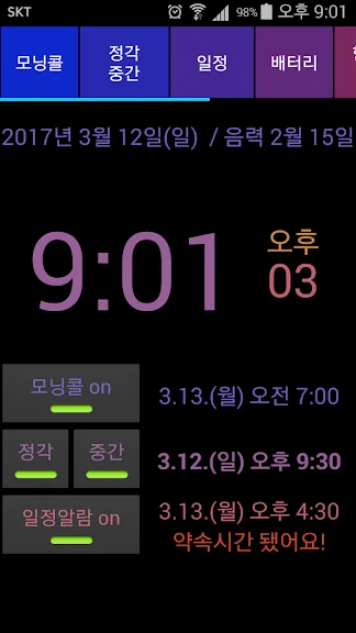 3. 홈 위젯에 현재날짜와 시간, 음력, 다음 알림 시간 표시