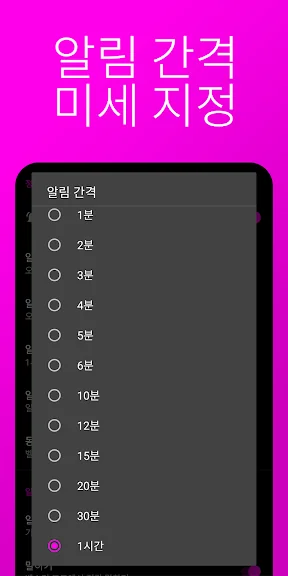 간격: 알림 간격을 최소 1분에서 1시간 사이로 선택할 수 있습니다.
