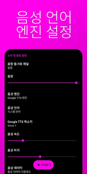 음성 속도: 말하는 속도를 조절할 수 있습니다.
