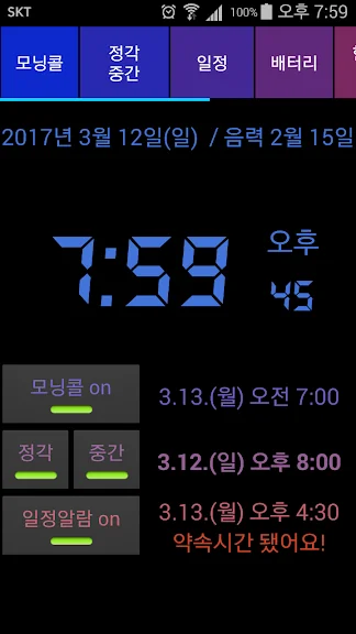 2) 정각알림(OnTimeAlarm)-상태표시줄 양력/음력/ 어플 스크린샷