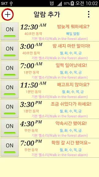 매시 정각(변경가능)에 시간과 함께 나만의 문구를 읽어드립니다.