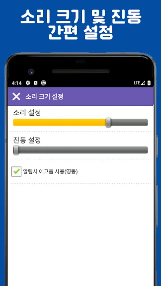 *알림음 소리크기 및 진동시간을 조정하실 수 있습니다.