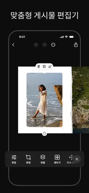 • 텍스트 삽입, 비율 조정, SNS에 최적화된 포맷으로 빠르게 변환