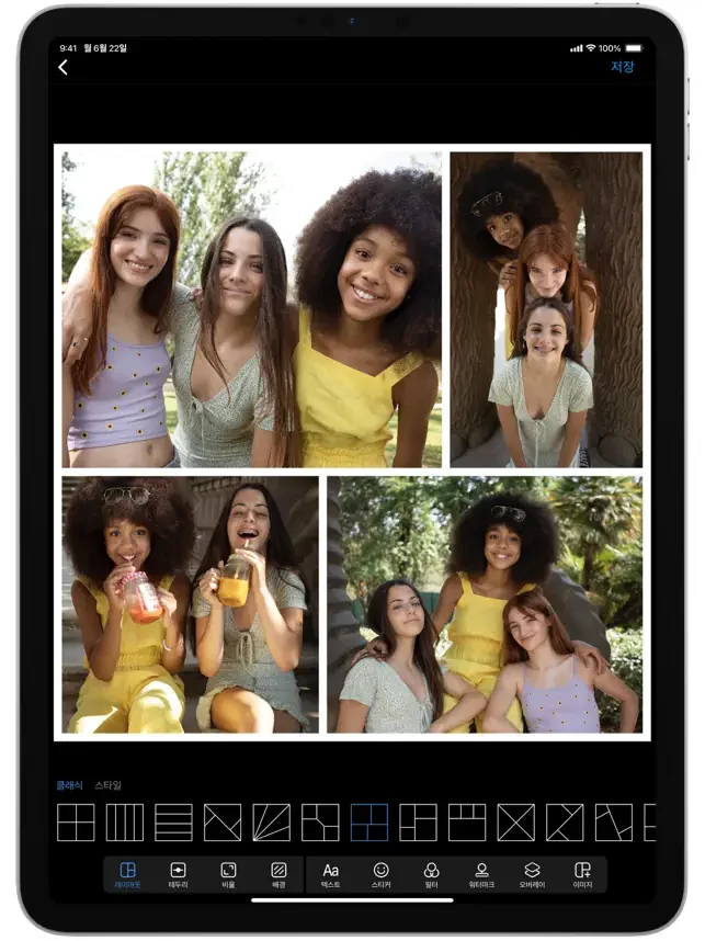 - 다양한 레이아웃을 사용하여 사진을 콜라주로 결합합니다.