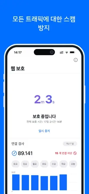 이 앱은 피싱 차단과 안전 브라우징 기능으로 인터넷을 사용할 때 위험한 사이트나 링크를 미리 차단해주니까, 갑자기 이상한 사이트에 접속했을 때도 걱정이 적어요. 특히 공용 와이파이 사용 시에는 VPN이 데이터를 암호화해서 위치와 정보를 비공개로 유지하는 데 큰 도움을 줍니다.