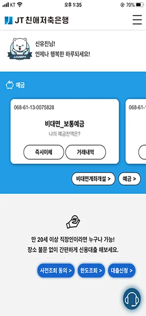 JT친애모바일뱅킹 어플을 만들어 주신 개발자님 감사합니다~