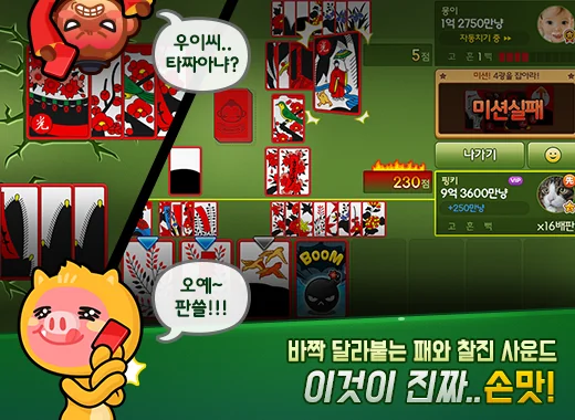 - 모두에게 공/평/한 원조 맞고 룰 적용!으로 공정한 재미있는 맞고를 즐기세요!