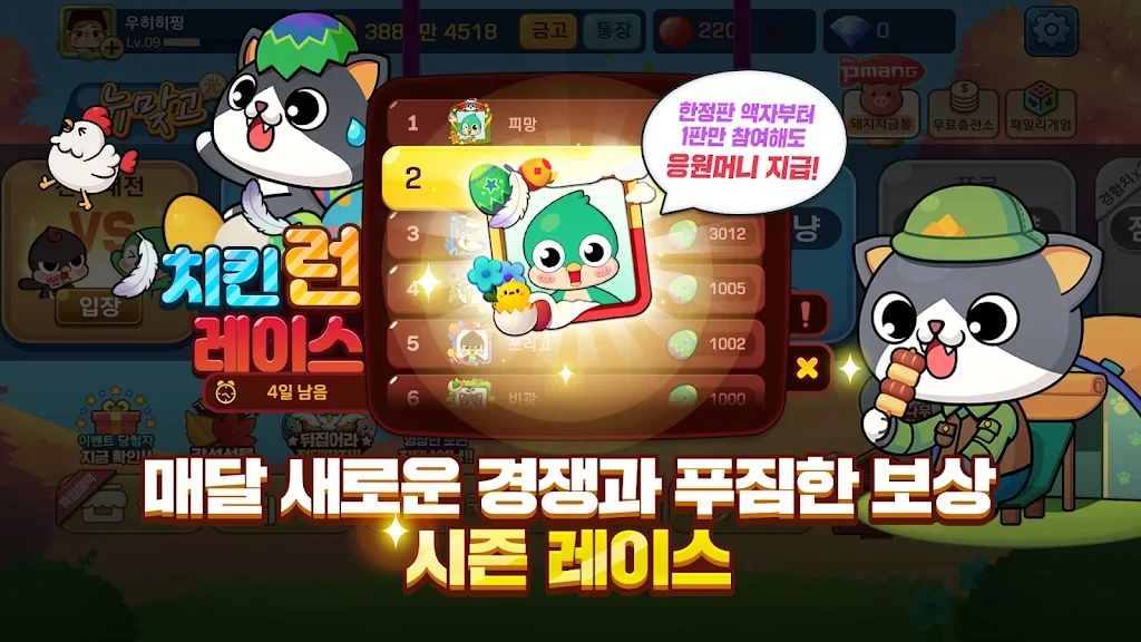 - 카페 점수를 쌓아 높은 순위를 달성하면 게임머니 보상은 덤!