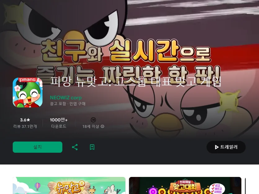 이 어플은 구글플레이스토어에서 "고스톱 게임"로 검색했을때 2번째로 나오는 어플입니다. 아래는 피망 뉴맞고: 고스톱 대표 맞고 게임 어플에 대한 자세한 설명이니 참고하세요.