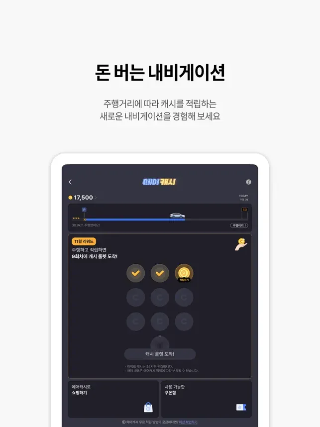 주행 거리에 따라 캐시를 적립하는 새로운 내비게이션을 경험해 보세요!