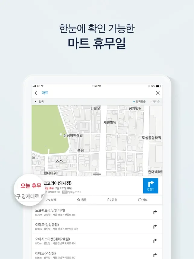 마트 영업시간과 같이 실생활에서 유용한 정보를 검색 과정 중에 확인할 수 있어요.