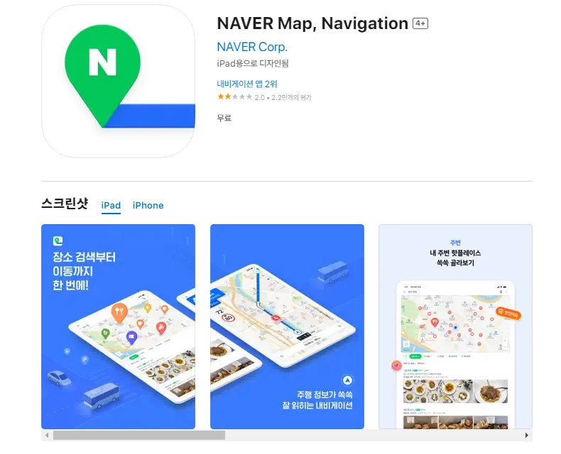 아래는 아이폰 NAVER Map, Navigation 어플에 대한 자세한 설명입니다. 참고하세요.